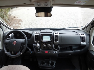 Het dashboard in luxe alu design met een Zenec multimediasysteem, Waeco achteruitrij-camera met dubbele lens, navigatie, bestuurders- en bijrijdersairbag, Bearlock, elektrisch bedienbare ramen en spiegels, en centrale vergrendeling.