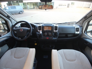 Het dashboard in luxe alu design met een Zenec multimediasysteem, Waeco achteruitrij-camera met dubbele lens, navigatie, bestuurders- en bijrijdersairbag, Bearlock, extra veiligheidssloten, elektrisch bedienbare ramen en spiegels, en centrale vergrendeling.