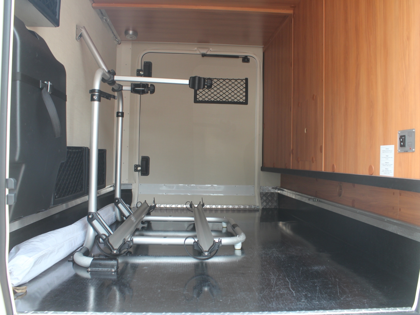 Het dashboard in luxe design met een Zenec multimediasysteem, Waeco achteruitrijcamera met dubbele lens, navigatie, blue tooth, bestuurders- en bijrijdersairbag, elektrisch bedienbare ramen en spiegels, centrale vergrendeling en een Bearlock anti-diefstal beveiliging. Het dak is hagelbestendig doordat er een speciale GFK bedekking is gemonteerd.