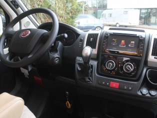 Het dashboard in luxe alu design met een Zenec multimediasysteem, Waeco achteruitrij-camera met dubbele lens, navigatie, bestuurders- en bijrijdersairbag, Bearlock, extra veiligheidssloten, elektrisch bedienbare ramen en spiegels, en centrale vergrendeling.