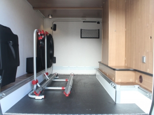 De royale garage is bereikbaar via een grote deur links en rechts, en bied voldoende ruimte voor het binnen stallen van uw fietsen en andere bagage.