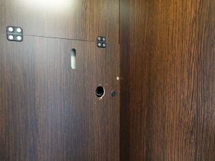 De slaapkamer heeft twee enkele bedden, met ruime (hang)kasten eronder. Door de tussendeur te sluiten ontstaat er een ruime slaapkamer met sanitaire voorzieningen met veel privacy.