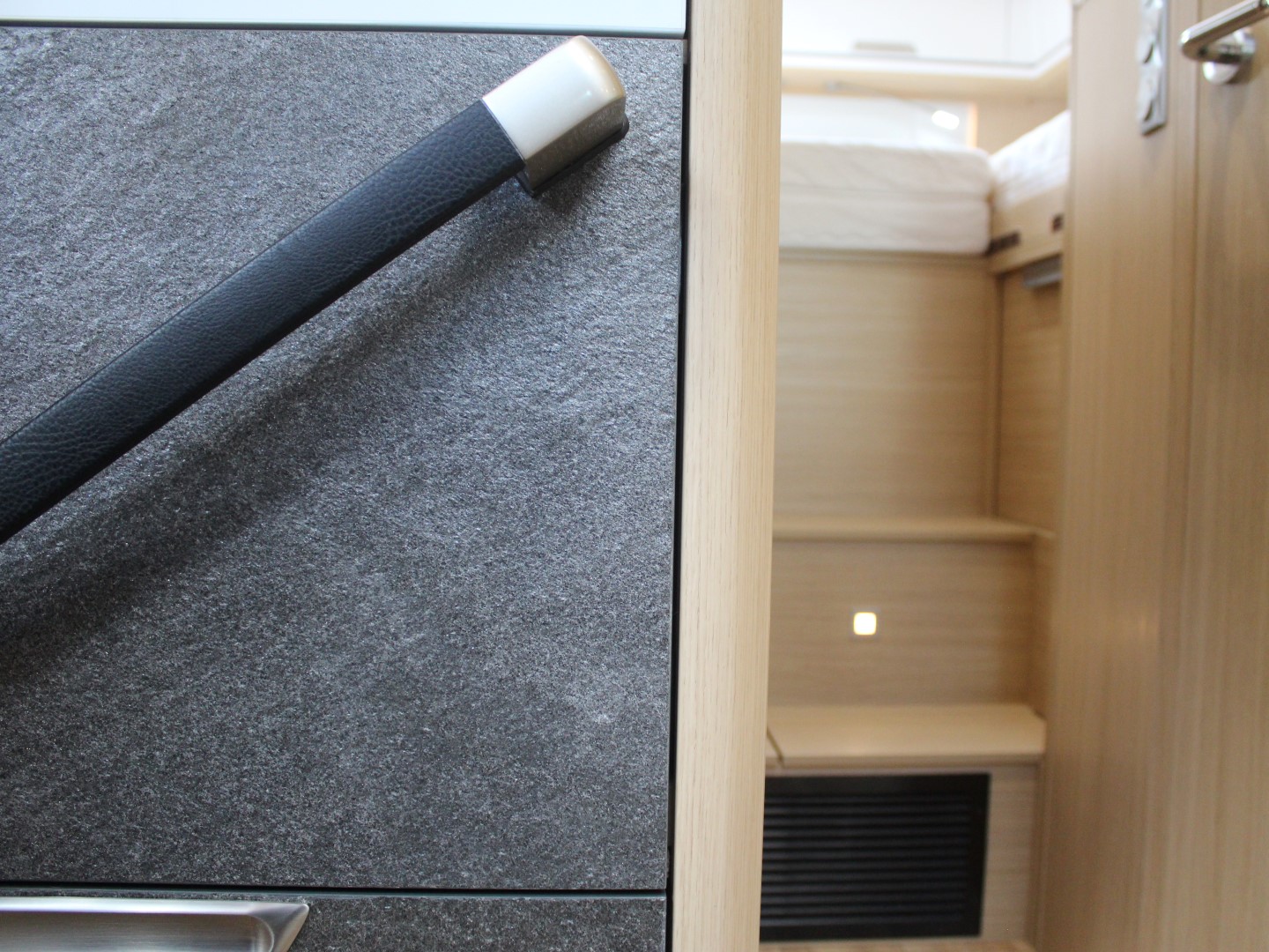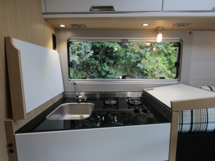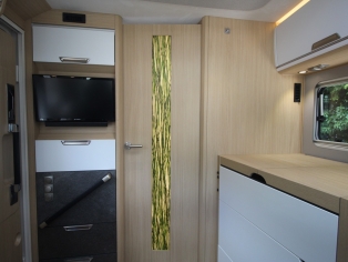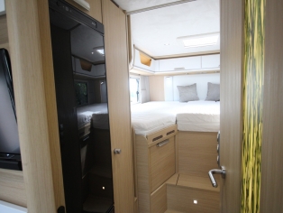 De royale slaapkamer heeft twee enkele bedden, met comfortmatras op Froli slaapsysteem, (om te leggen naar 1 groot bed) waaronder zich ruime kasten bevinden. De camper is voorzien van Alde 3020 vloeistofverwarming met thermostatische regeling incl. motorwarmtewisselaar. De royale keuken bevat een spoelbak en 2 pits kooktoestel, diverse gelagerde laden voor kookgerei en boodschappen, en ruime Thetford AES koelkast met vriesvak en handige schuiflade.