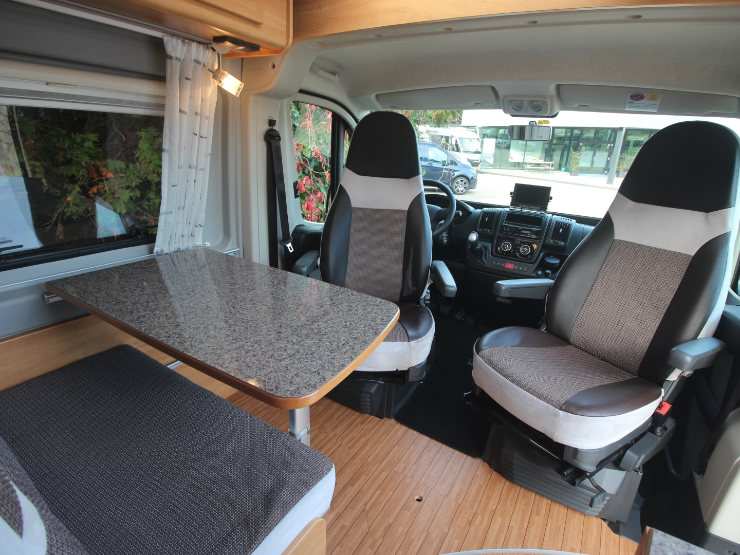De camper is voorzien van Truma Combi 6 verwarming/boiler combinatie met ringverwarming, luifel, LPG installatie met buitenvuller, wegdraaibare busbiker fietsendrager achterop. U bent altijd voorzien van voldoende stroom doordat de twee zonnepanelen de huishoudaccu continu gevuld houdt.